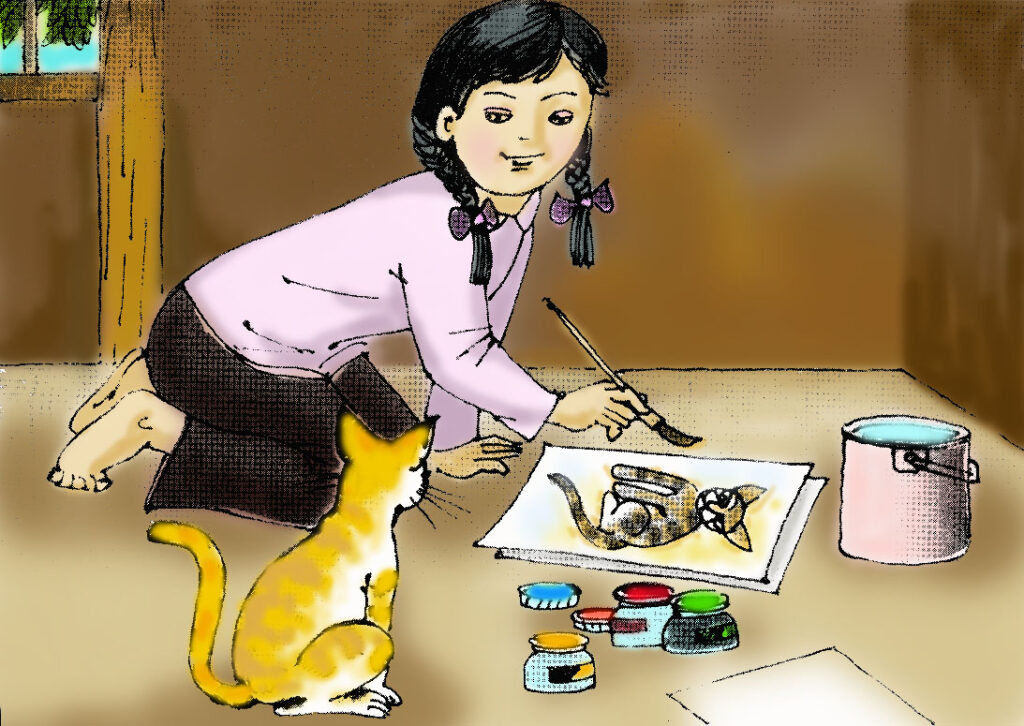 – Khi người em đi tham dự trại thi vẽ và đoạt giải: