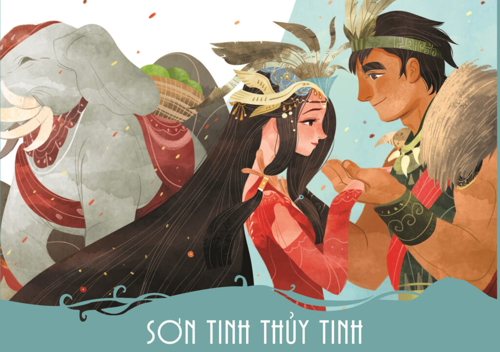 – Trước hai chàng rể xứng đáng, vua Hùng không biết lựa chọn ai, từ chối ai, nên đã đưa ra lễ vật: một trăm ván cơm nếp, một trăm tệp bánh chưng, voi chín ngà, gà chín cựa, ngựa chín hồng mao